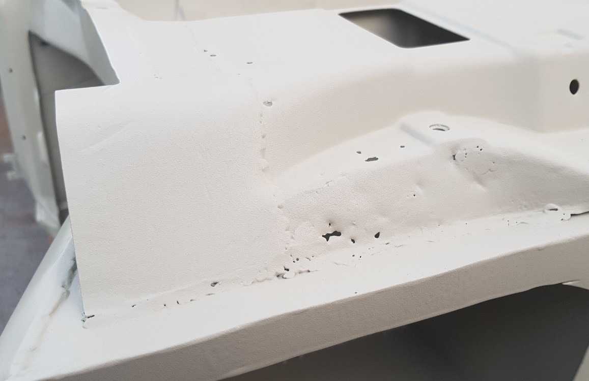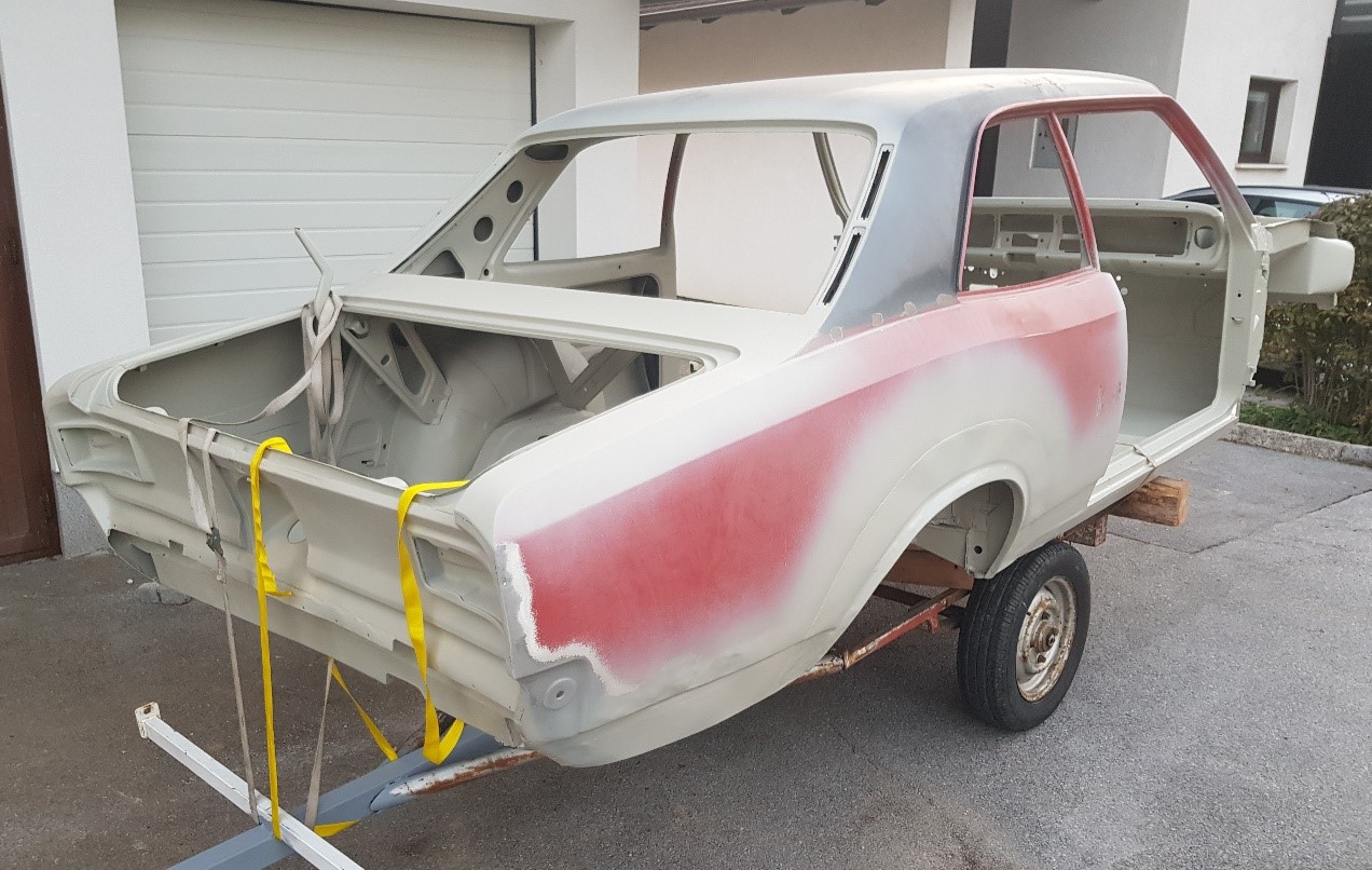 "Napej" = naprej ali najprej? Jaz bi ga na tvojem mestu peskal pred kleparijo, saj se ti ob peskanju pokaže še kakšno mesto, ki bo potrebno kleparije. Jaz ne bi peskal ravnih fleh, ker jih zna pokrivit + nima smisla peskati npr. sprednjo havbo (razen kakšnih vogalov).