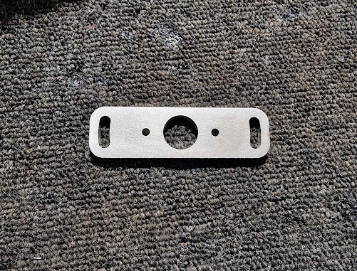 Za montažo novega senzorja sem si zrisal in dal vrezat vmesno adapterplato, ki omogoča privijačenje in malenkostne nastavitve pozicije senzorja, zgleda pa takole: