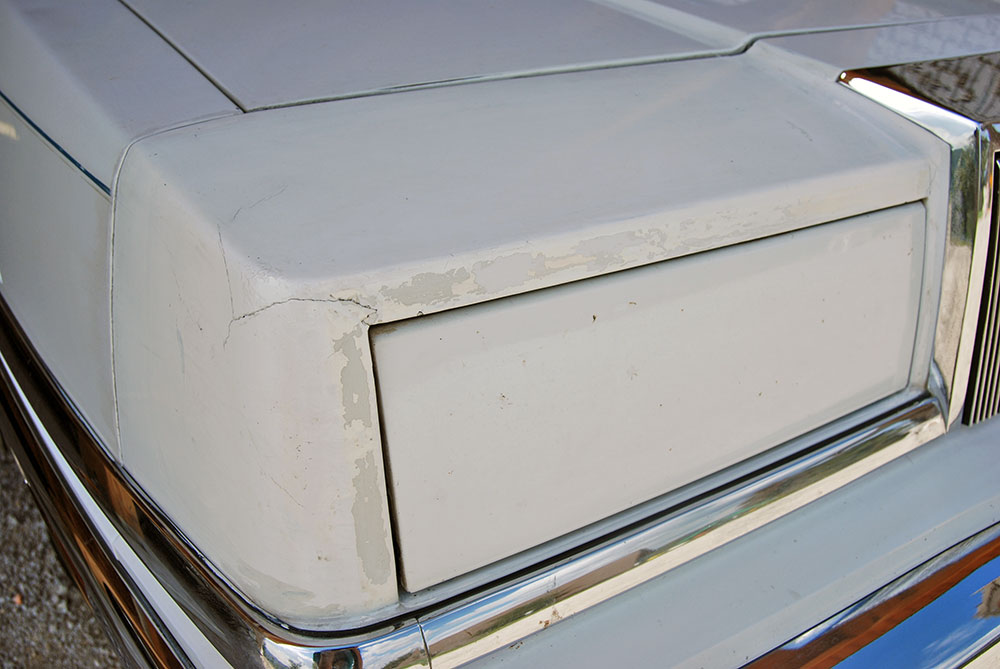 Na blizu izgleda bolj grdo. Pa še stara poškodba in slaba sanacija. Za povrh pa še manjkajoči pinstripe črti...