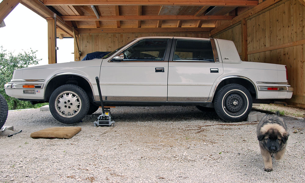 Razmišljal sem, da bi iz jeklenih 14" felten prešel na 15" feltne od LeBarona. Samo zelo nerad se odpovem pnevmatikam z belo obrobo. Bo treba en nov komplet iz USA pripeljat. Če ne bo šlo drugače bom pač montiral 205/65R15. Feltne od LeBarona bi v tem primeru najverjetneje prebarval na mat črno. Zanima me kako bi izgledala mat bela različica....?