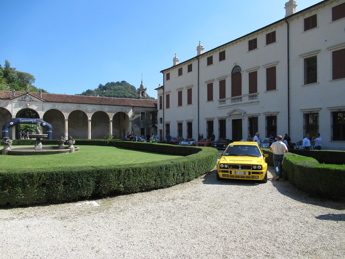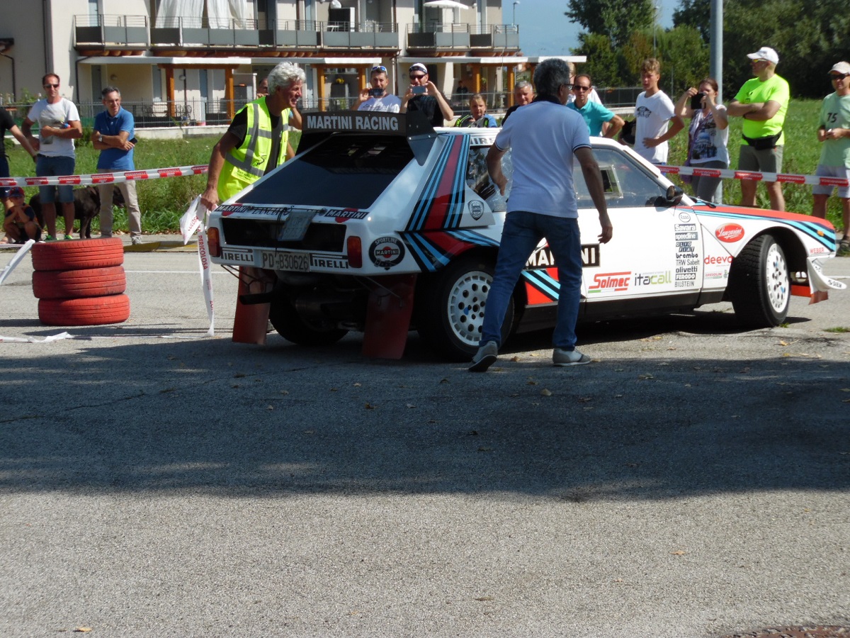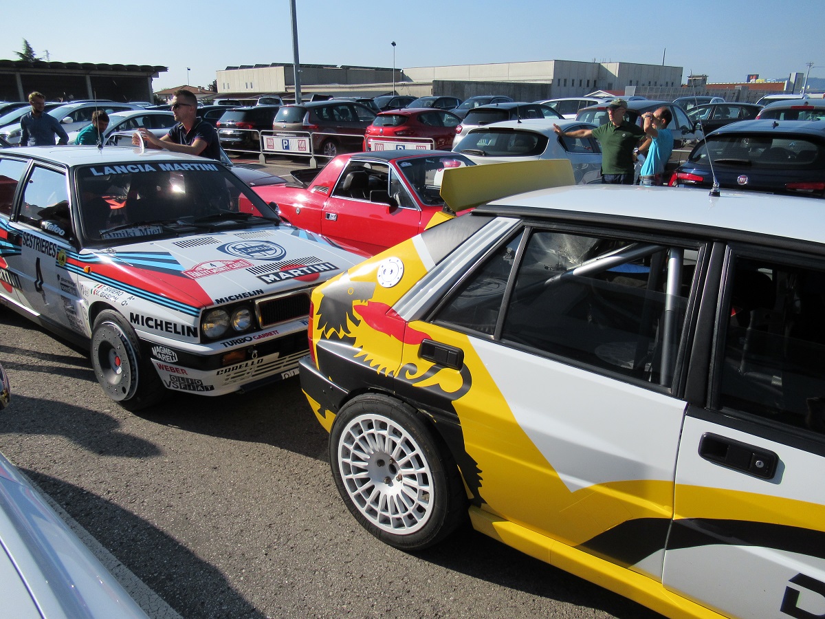 Od muzeja pa direktno v hotel pod tuš. Zunanja temperatura je bila 31 stopinj, tako da sem se skoraj prilepil na usnjen sedež in hladna pijača je ned vožnjo tekla v potokih po razgretem grlu. Pozna se, da nimam več 20 let, brez klime in prevoženih 370 km. Pozno popoldan stopiva ven iz hotela. V odaljenosti 100 m stran od hotela zagledam polega avtomobilskega salona polno Lancij Delt....4wd, Integrale, 1.6 turbašic, EVO1, EVO2....vglavnem vsa vozila kot da bi prišla konec 80 in v začetku 90-ih direktno iz tekočega traku. Do zadnjega detajla......u nulo......notri in zunaj zrihtana vozila....... tam jih je bilo parkiranih 39...in so bili njegovi podporniki iz rojstnega mesta Biasiona - Bassana. Zaželel sem si videt tudi kakšno, katera bi imela PRASKICO, PIKICO, ODRGNINO....pa jo ni bilo. Nato se peš odpraviva proti starem mestnem jedru Bassana, kjer naj bi bila podelitev župana Bassana in rally biografija od leta 1983 - 1988 in novinarska konferernca katera naj bi video - vizualno trajala 3 ure v prijetnem vzdušju na srednejveškem gradu.