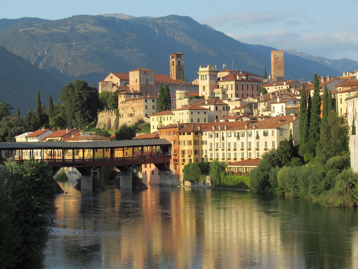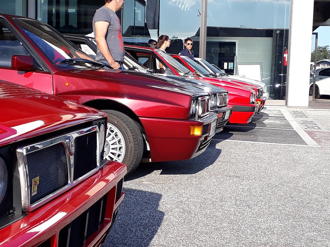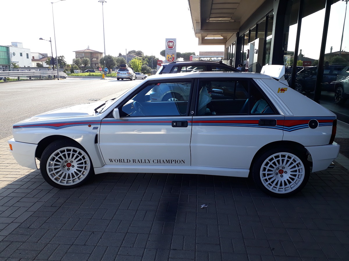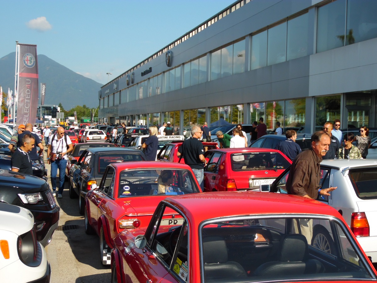 Od muzeja pa direktno v hotel pod tuš. Zunanja temperatura je bila 31 stopinj, tako da sem se skoraj prilepil na usnjen sedež in hladna pijača je ned vožnjo tekla v potokih po razgretem grlu. Pozna se, da nimam več 20 let, brez klime in prevoženih 370 km. Pozno popoldan stopiva ven iz hotela. V odaljenosti 100 m stran od hotela zagledam polega avtomobilskega salona polno Lancij Delt....4wd, Integrale, 1.6 turbašic, EVO1, EVO2....vglavnem vsa vozila kot da bi prišla konec 80 in v začetku 90-ih direktno iz tekočega traku. Do zadnjega detajla......u nulo......notri in zunaj zrihtana vozila....... tam jih je bilo parkiranih 39...in so bili njegovi podporniki iz rojstnega mesta Biasiona - Bassana. Zaželel sem si videt tudi kakšno, katera bi imela PRASKICO, PIKICO, ODRGNINO....pa jo ni bilo. Nato se peš odpraviva proti starem mestnem jedru Bassana, kjer naj bi bila podelitev župana Bassana in rally biografija od leta 1983 - 1988 in novinarska konferernca katera naj bi video - vizualno trajala 3 ure v prijetnem vzdušju na srednejveškem gradu.