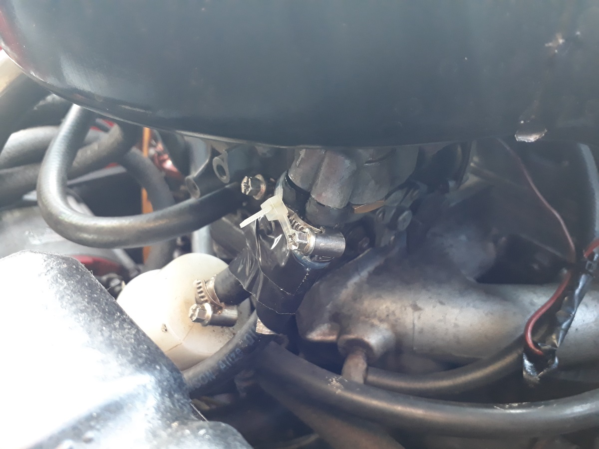 Končno sem tudi jaz imel čas da ugotovim kje mi pušča bencin......na frgazerju se mi je medeninasta cevka odduška goriva dobesedno senla iz frgazerja. Od vročine, starosti in treslajajev se je prešana cevka v gus snela. Moral sem nekaj improvizirat, če pa ne bi šlo pa klicat sprmljevalno vozilo Martini racing team - Iveco.......nekako sva rešila to težavo......