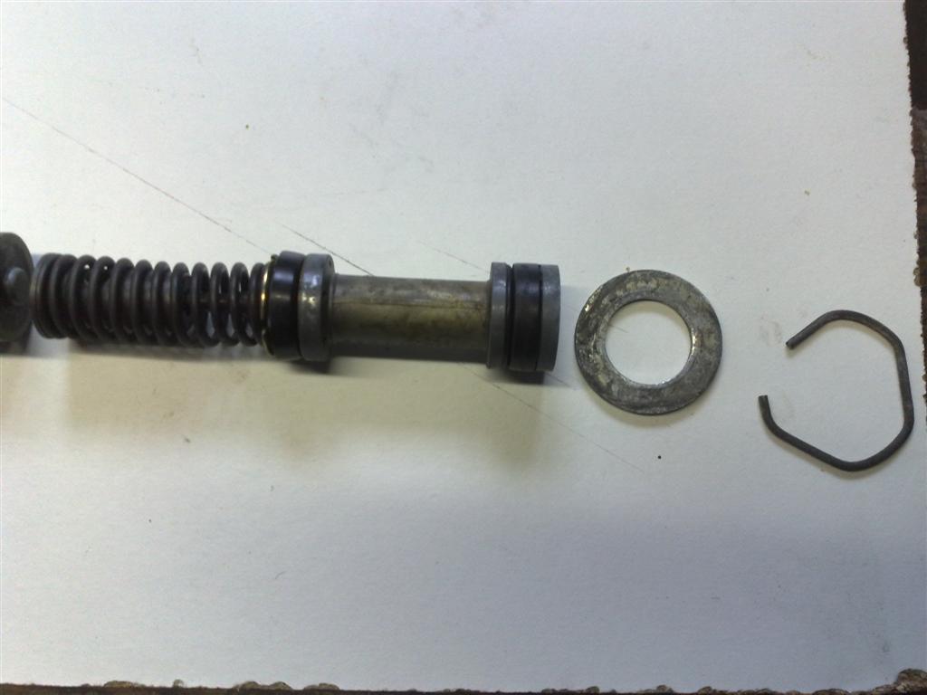 Takole izgleda razstavljen cilinder: In sedaj me zanima naslednje- kako se to razstavi, da se lahko zamenjajo gumice? Uspelo mi je sneti samo čisto notranjo gumico, katero drži samo podložka. Se komu sanja kako gre to narazen?