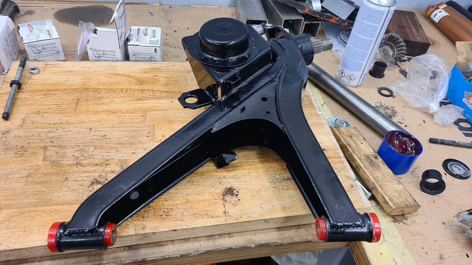 Nadaljeval sem še z montažo zadnjega mosta, kateri je dobil roke (noge?), stabilizator, diff in puše. Nosilec zanj ga z novimi poliuretanskimi pušami že čaka na šasiji. Jutri prejme še polgredi, nato pa roma na avto. Bi jih dobil že danes, če nebi mačka dobla šplente v oko in je bla cela panika doma. #Bemtimuco