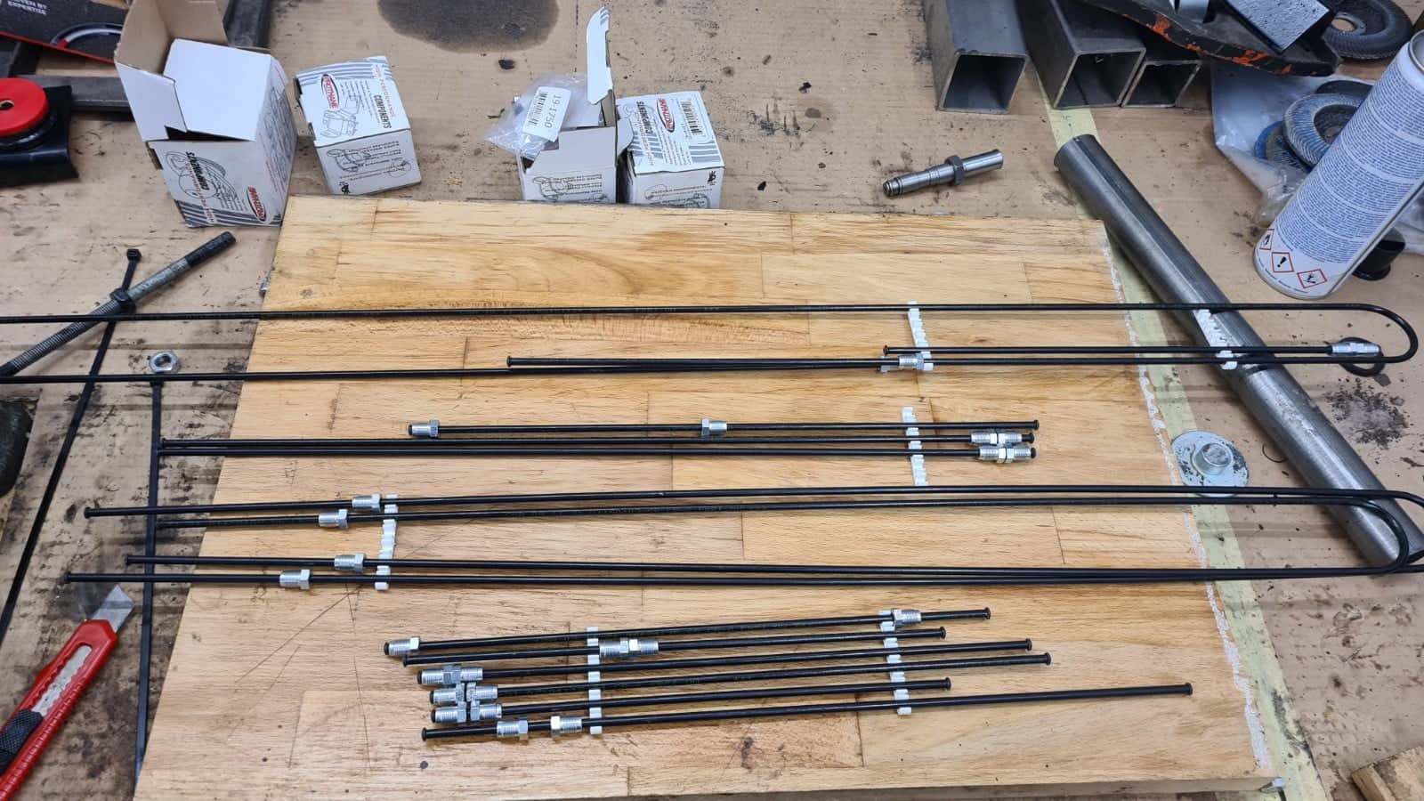 Pa še zadnji most - polgredi so gor, kovinske in gumijaste zavorne cevi tudi, zdaj pa je RES pripravljen na montažo. Ker sem s tem zaključil proti koncu dneva, sem si montažo raje pustil za bolj-svežega-sebe naslednji dan. Aja, to je danes. Zaželite mi srečo!