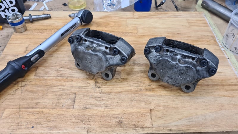 Sledila je sestava prednjih zavor. Sčiščene, prepihane in razrjane čeljusti so dobili osvežitev: