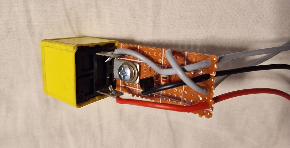 Takoenako ni deloval obratomer, ki se v originalu napaja iz negativne strani cinšpule ter zaznava sunke ob podrtju električnega polja v njej. Direktna vezava na signal iz ECUja ni zadostovala, zato sem od prijaznih gospodov iz internetov skopiral zvijačo z uporabo parih elementov in navitja releja ter izdelal vmesnik:
