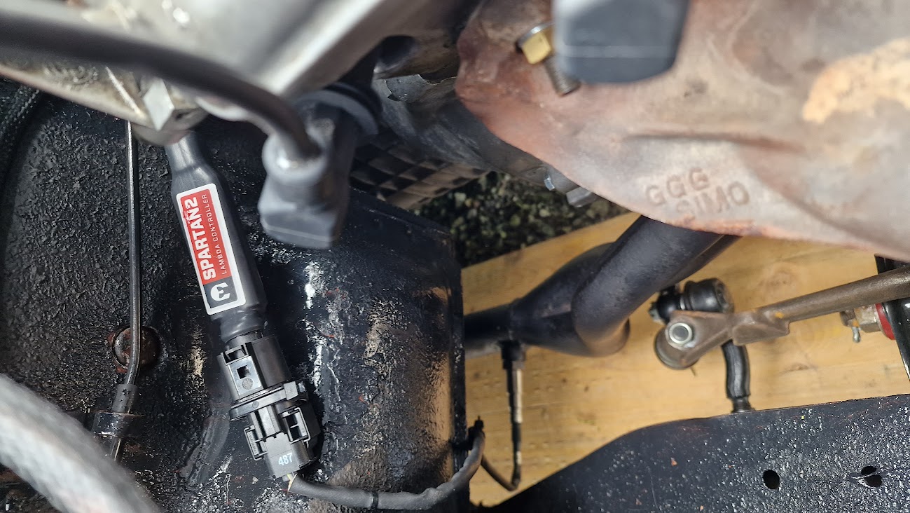 Zadeva deluje, zato sem kot zadnjo stvar želel priklopit še širokopasovni lambda kontroler s senzorjem v izpuhu, pri čemer sem našel svoj edini fail pri izdelavi električne veje - zaradi glupih označb in zaporedja kablov sem očitno zamešal pine v konektorju. Skuril sem elektroniko, ki sem jo sicer neuspešno poskusil popravit: