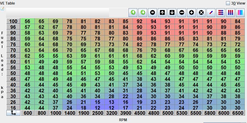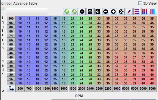 Mape so sicer v prenekaterih območjih delovanja motorja še nepopolne in bi bile potrebne precej dodatne pozornosti da bi dosegel nivo "fabriške" izpoliranosti modernejših agregatov, vendar bi bil za nastavitev vseh območij praktično nujen celodnevni obisk dynota, saj jih je na cesti težko in tudi nevarno nastavljati - s tem ne mislim (le) na cestnoprometno varnost, ampak tudi na blagostanje motorja; za natančno nastavitev map vžiga bi bilo potrebno meriti učinke sprememb kota predvžiga pri različnih obratih in stopnjah obremenjenosti, ob tem pa seveda prisluškovati agregatu za znake klenkanja. Ker gre za serijski motor, sem tokrat le "prepisal" mape predvžiga iz knjig in za preprostost zaenkrat zelo konzervativno vpeljal dodaten zamik glede na podtlak v sesalnem kolektorju, tako da najpomembnejši mapi količine goriva in vžiga sedaj izgledata nekako takole: