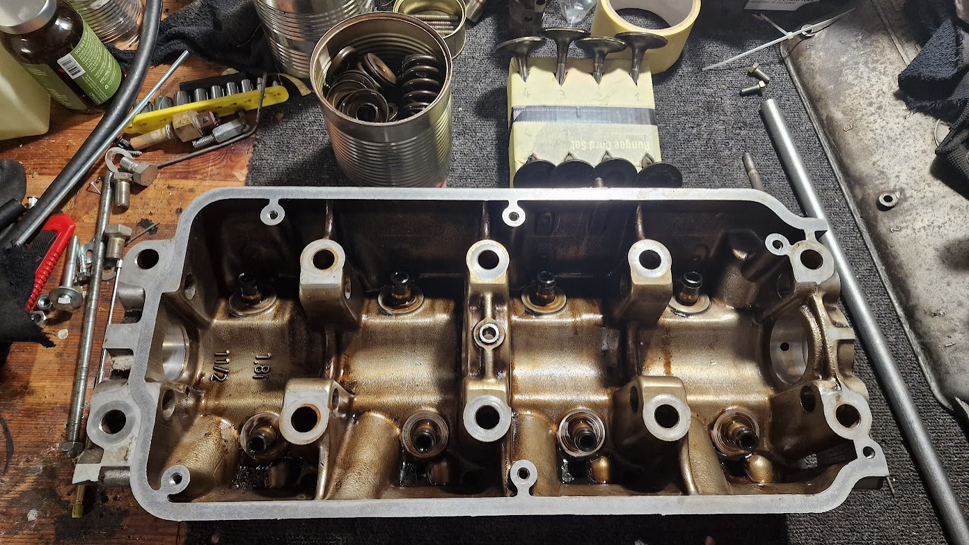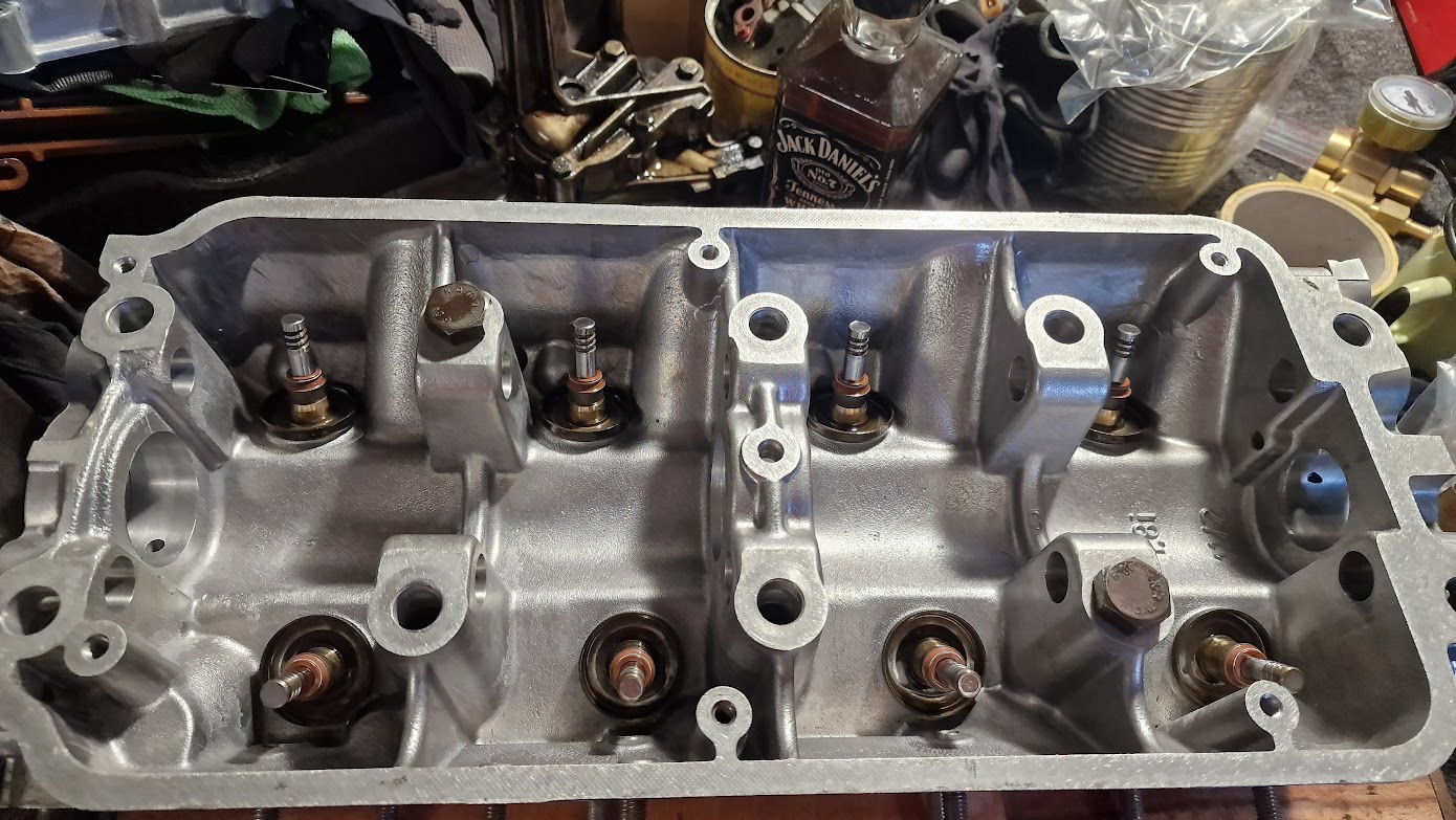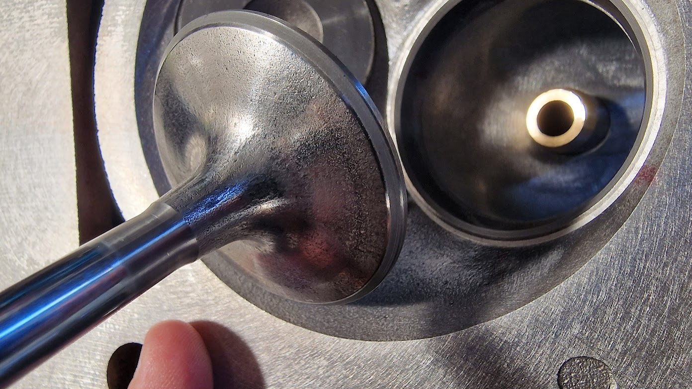Potlej je glava šla še na ravnanje, vstavitev novih vodil ter brušenje sedežev. Fabriški trije koti, nič posebnega. Izgorevalne komore se razen čiščenja nisem dotikal.