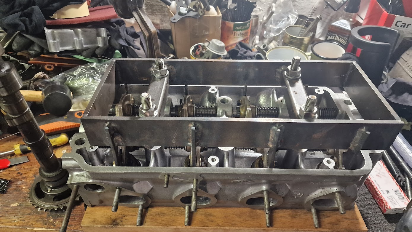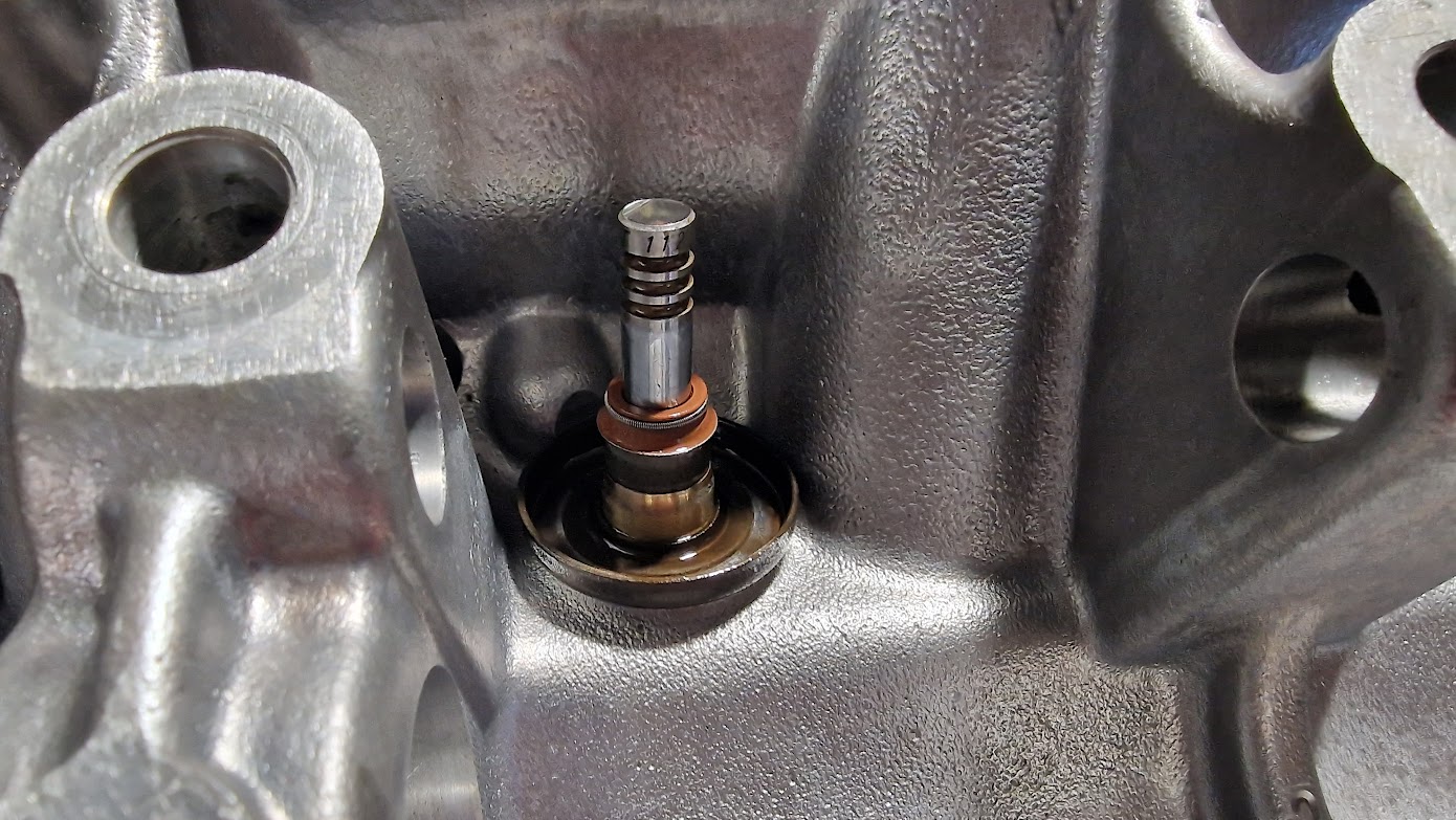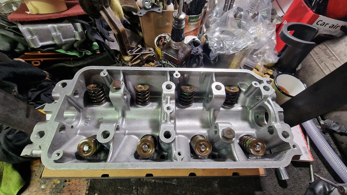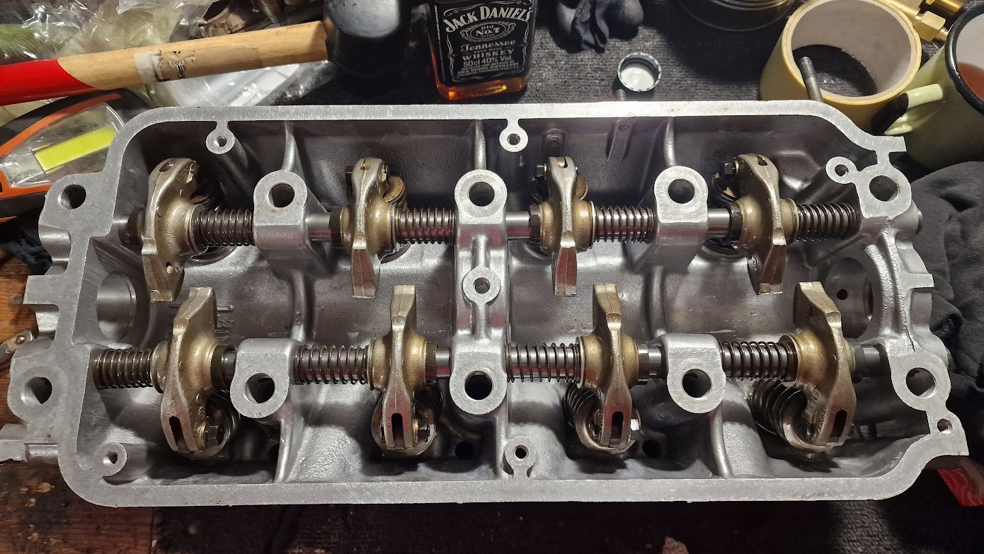 Osem gibov ročice kasneje so bili ventili že ujeti v glavi, star trik z uporabo pikice masti na zagozdah je super način za montažo: