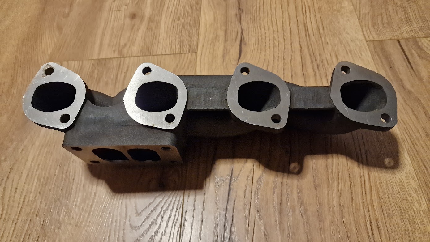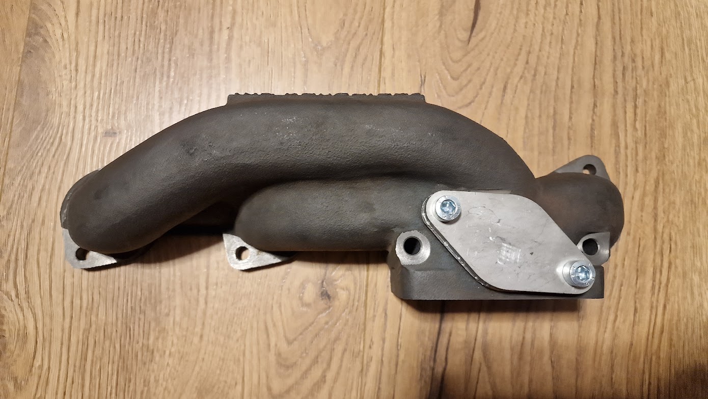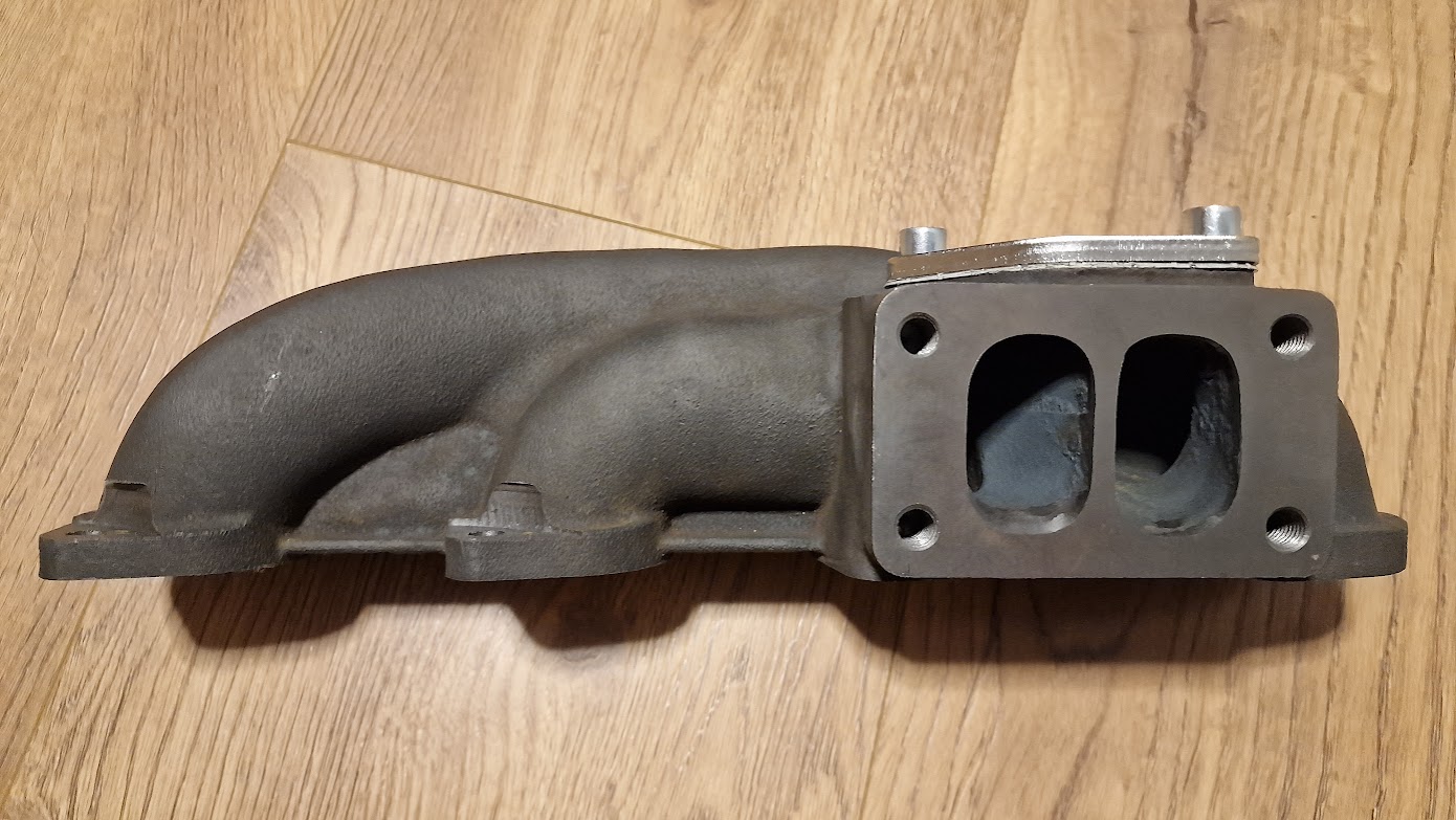 Gre za odlitek izpušnega kolektorja, ki je po zasnovi praktična kopija OEM kolektorja iz 2002 Turbo modela z dodano možnostjo zunanjega wastegata. Sicer nima enakodolgih izpušnih poti med cilindri kot bi to lahko dosegel s samogradnjo, a me je v nakup bolj prepričala kompaktnost celotnega sistema in verjetno superiorna vzdržljivost odlitega kolektorja v primerjavi s tubularnim. Glede na to, da nimam namena (in znanja) podirat močnostnih rekordov, navedene prednosti odtehtajo neenakost pulzov izpuha.