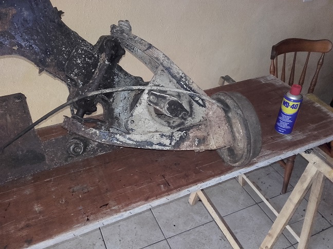 Med čakanjem na šasijo, ki jo bomo tudi peskali kompletno, pa sva se z lastnikom odločila, da obnovima komplet podvozje in motor. No v bistvu delam jaz, on skrbi za organizacijo(DOSTI PIVA) in skaknje za deli.
