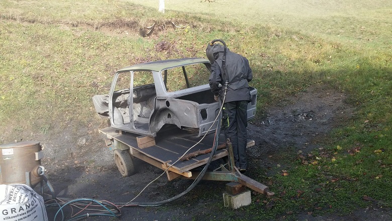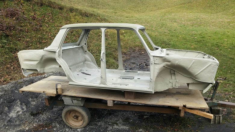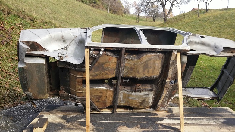 Avto je sedaj raztavljen na prafaktorje in školjka se obnavlja, vrata blatniki in ostala pleharija je komplet speskana + temelj.