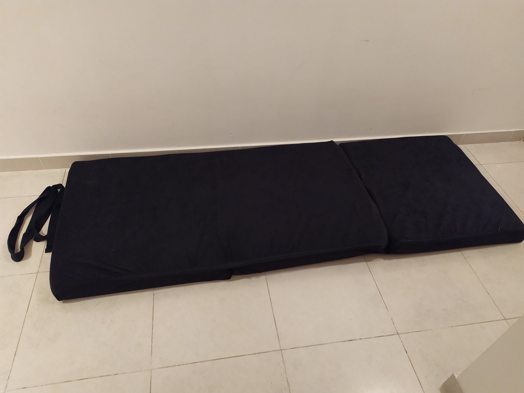 Prodam po meri narejeno 3-segmentno ležišče za campervan v črnem plišu, primarno namenjenu spanju otroka/nižje osebe prečno na sprednjih sedežih kombija.