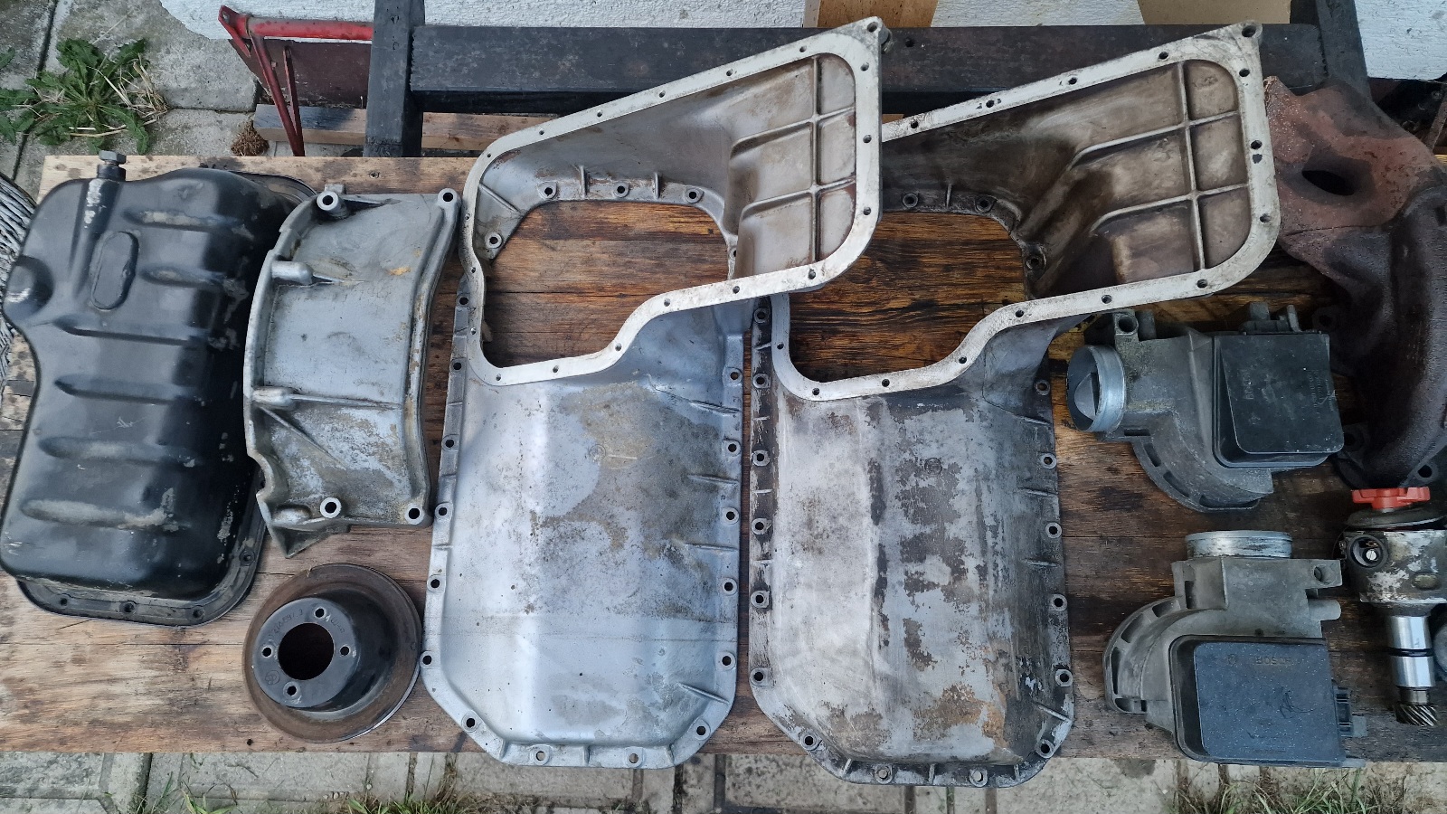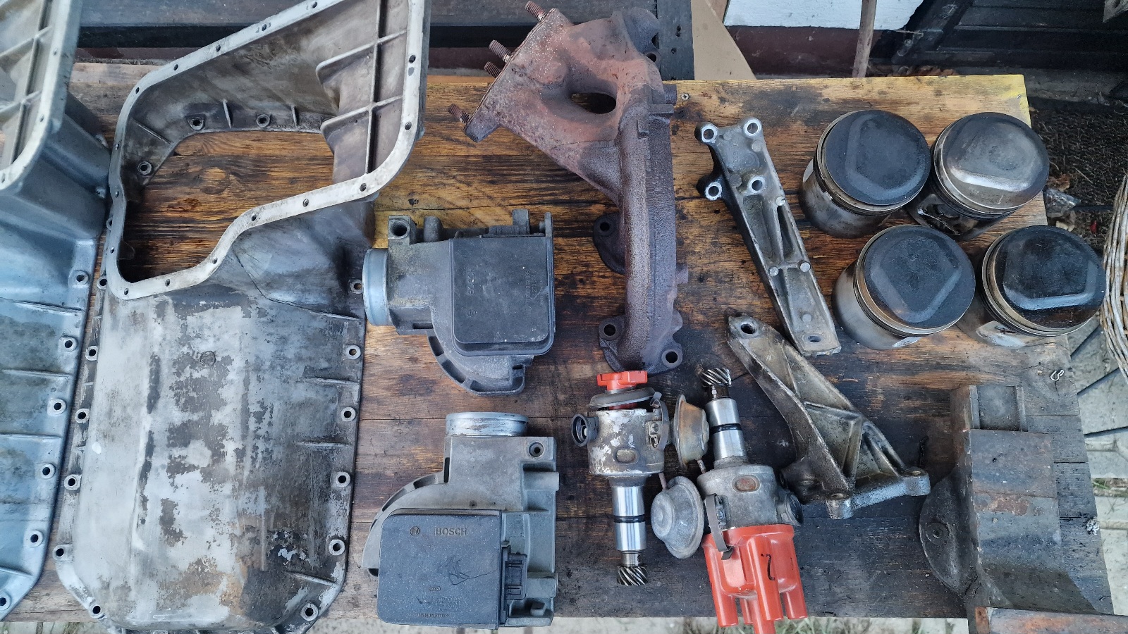 Ce kdo kaj rabi kar vidi na dveh sledečih fotkah, bo Le za kratek čas! na voljo po principu menjave 1 kos = 1 sixpack uniona. Mehanske stvari zgledajo OK, za elektroniko (LMM, razdelilce vziga) ne vem, ampak bi naj bili delujoci. Vse je iz motorjev M10B18i iz e30. Kar ne odide v roku dobrega tedna peljem v keson ker mi dela gužvo.